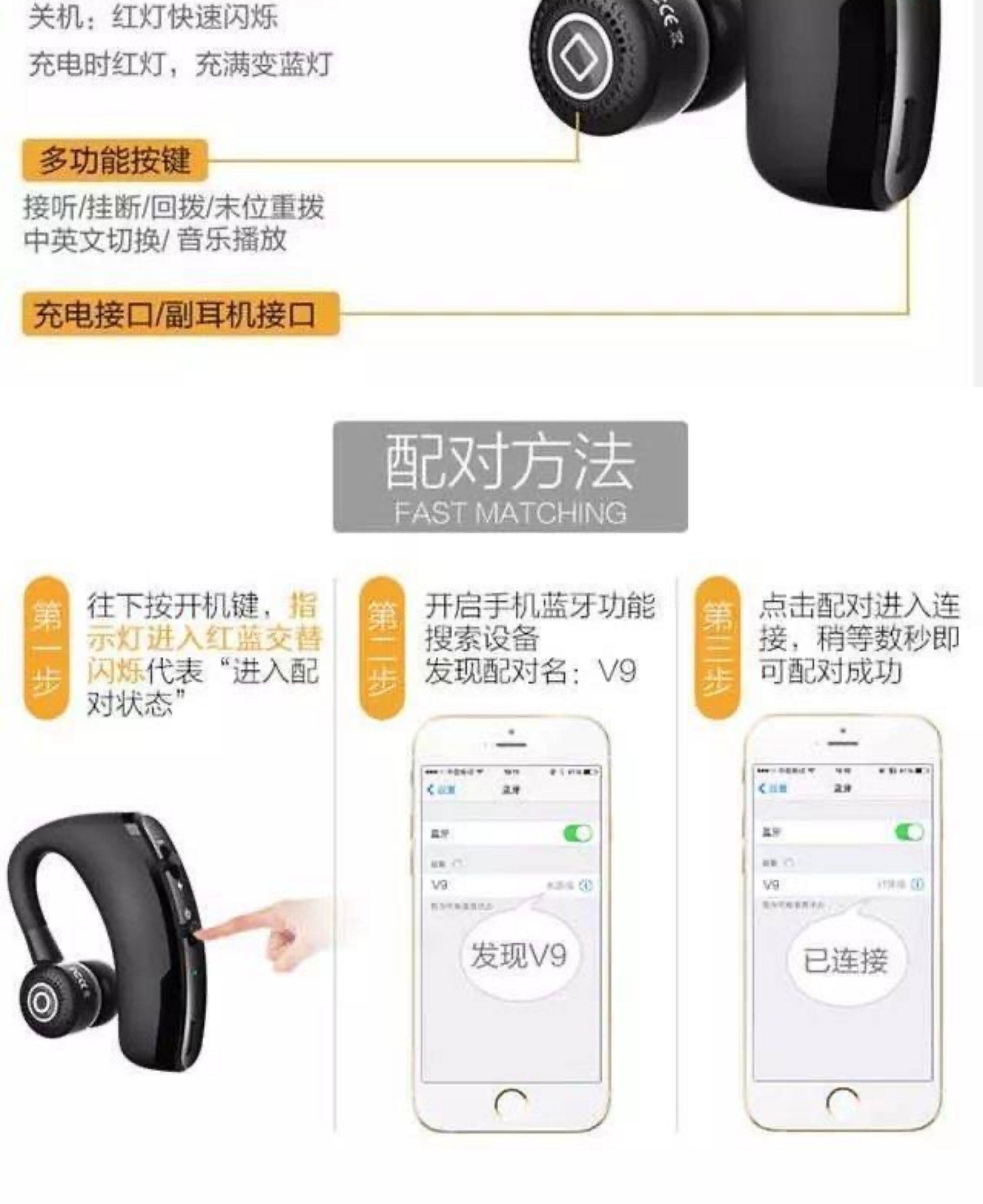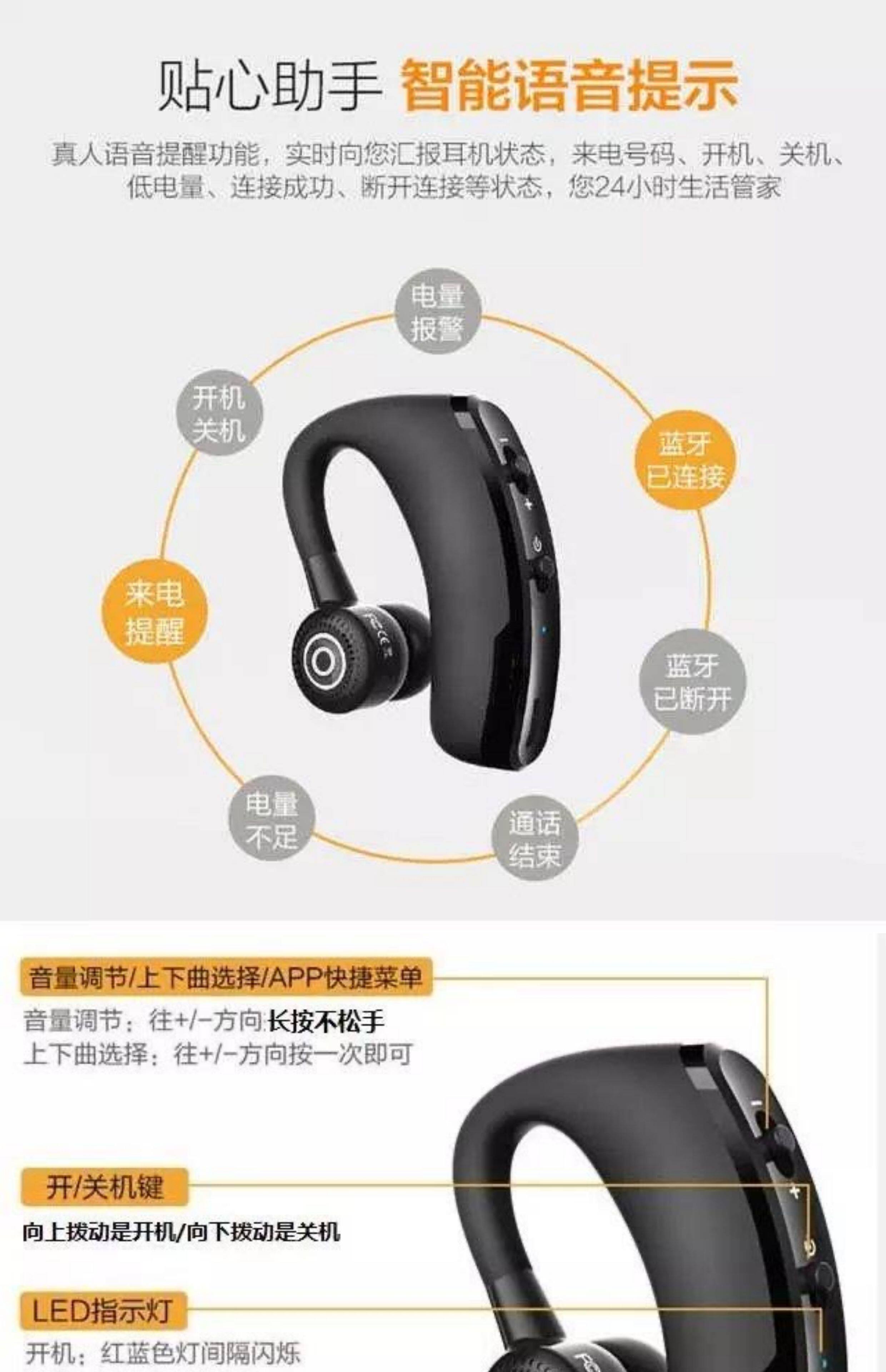 v9 高配商务蓝牙耳机报姓名带声控